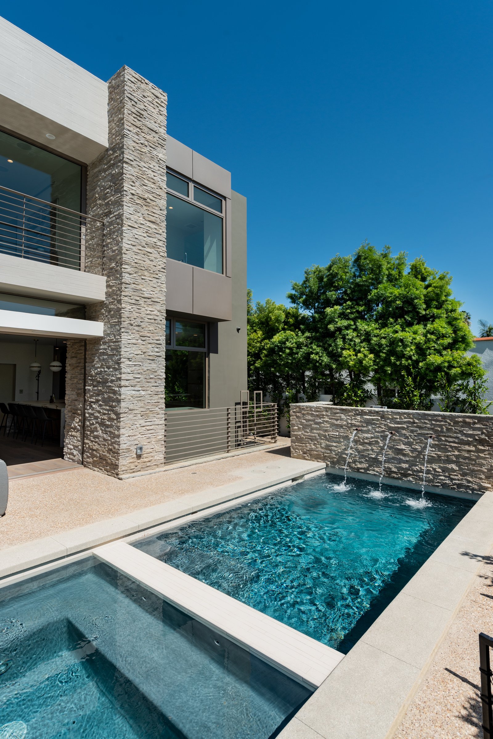 There is truly nothing LA Concrete Works cannot do when it comes to architectural hardscape. From sand-finish driveways to 6″ topping slabs to curbs and gutters, we can do it all. Our concrete crews work on both commercial and residential projects, allowing us to perform in multiple environments. Our head project managers have been in the field for over 25 years, bringing an extensive wealth of knowledge to the field. We help clients work through many different scenarios in terms of figuring out different elevations for proper drainage, the right type of design for your specific house, commercial projects, and much more. Landscape designs are integrating architectural elements more than ever, and they are not just limited to exterior spaces. Residential design has been incorporating architectural structures into interior spaces, such as board-formed walls, concrete fireplaces, and seating. We specialize in these finishes and have led the movement in integrating them into both interior and exterior spaces.